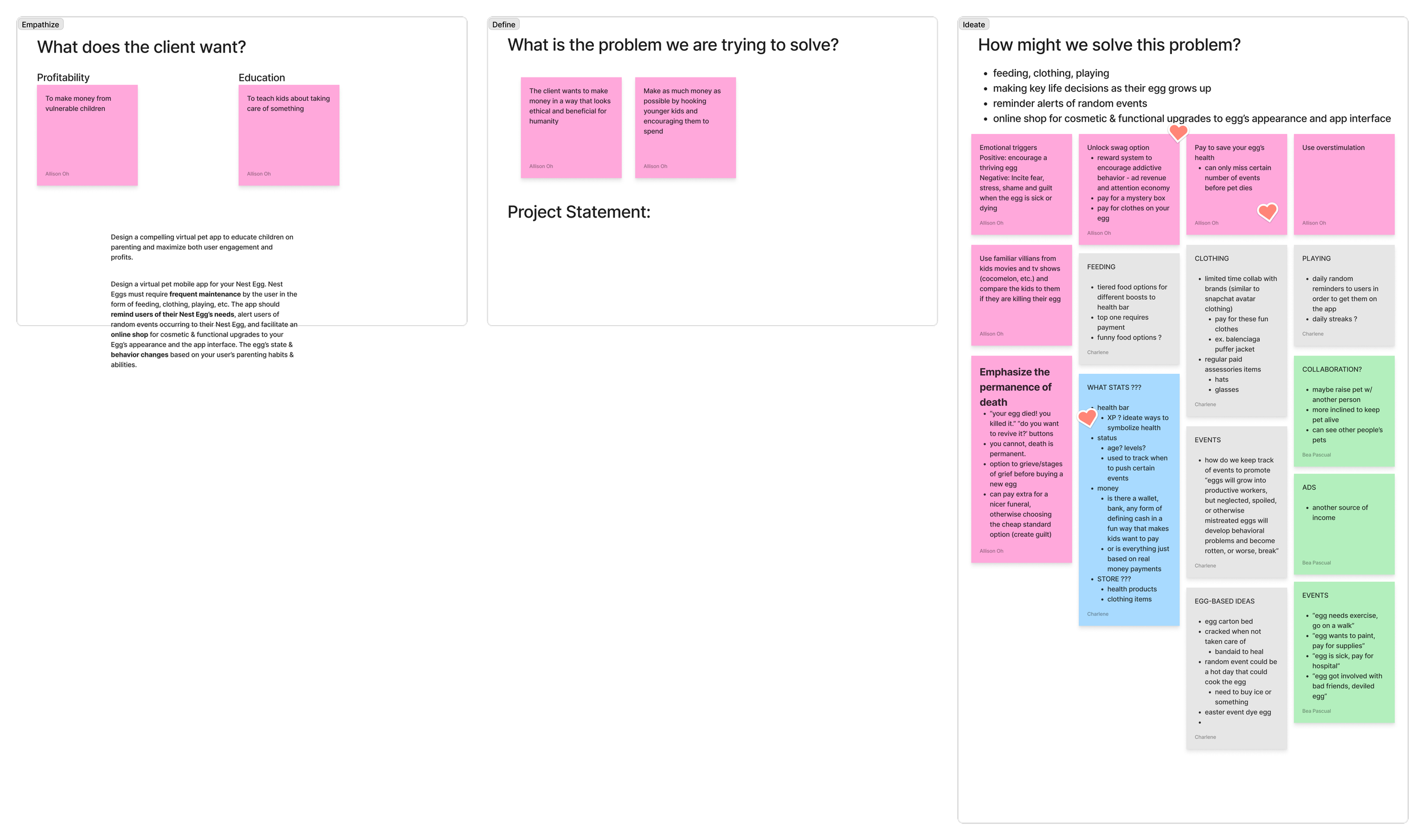 We started by creating a FigJam file to gather our ideas on how to tackle the challenge of creating an app for kids that helps them learn about parenthood.